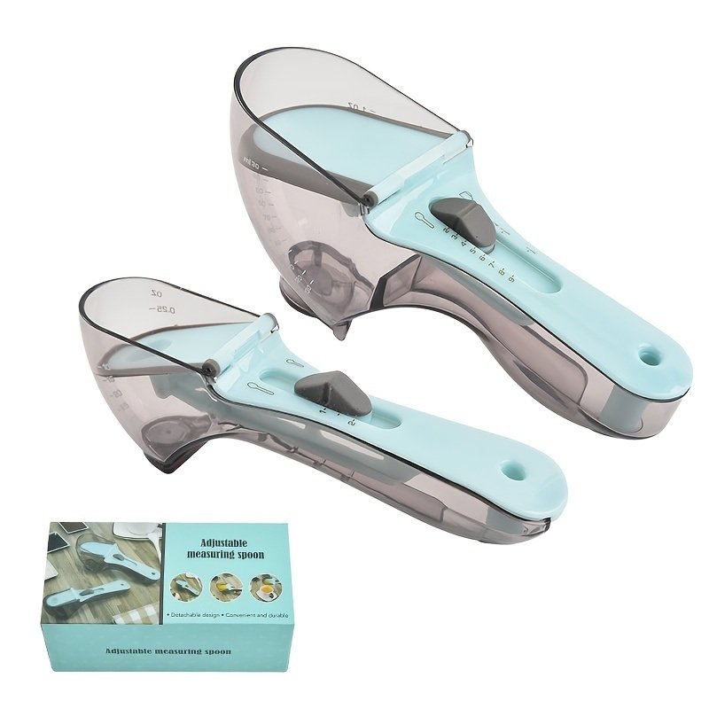 Home > 2pcs Adjustable Measuring Cups And Spoons; Plastic Scoop Measuring Cup With Magnetic; For Dry And Liquid Ingredient; Kitchen Tools