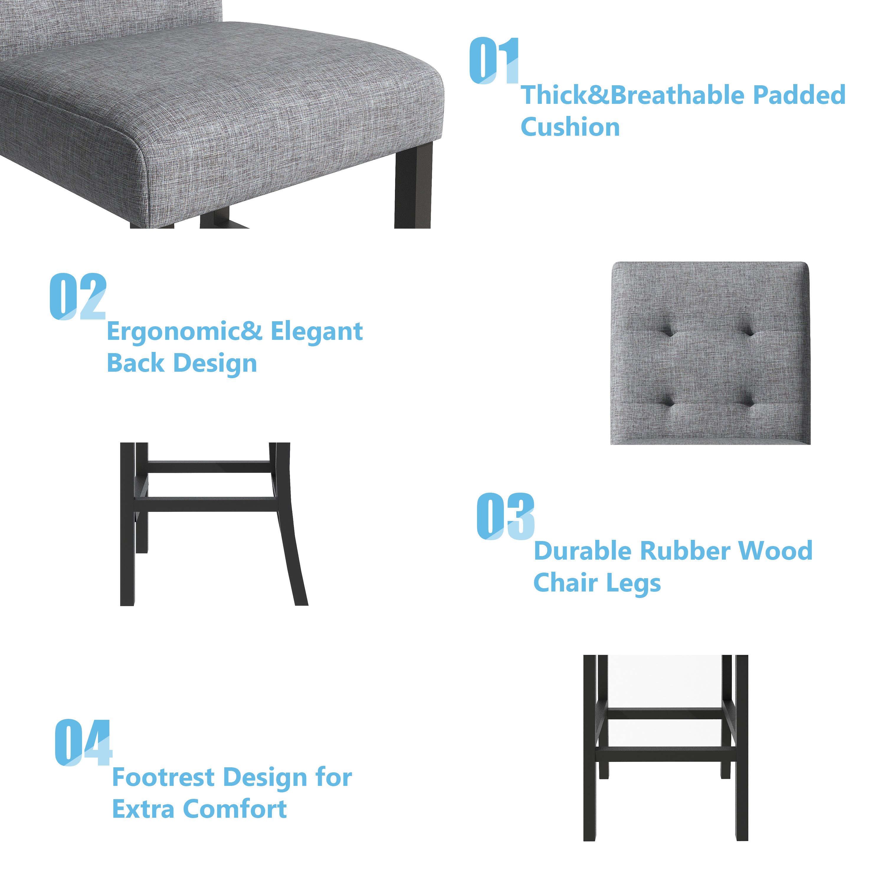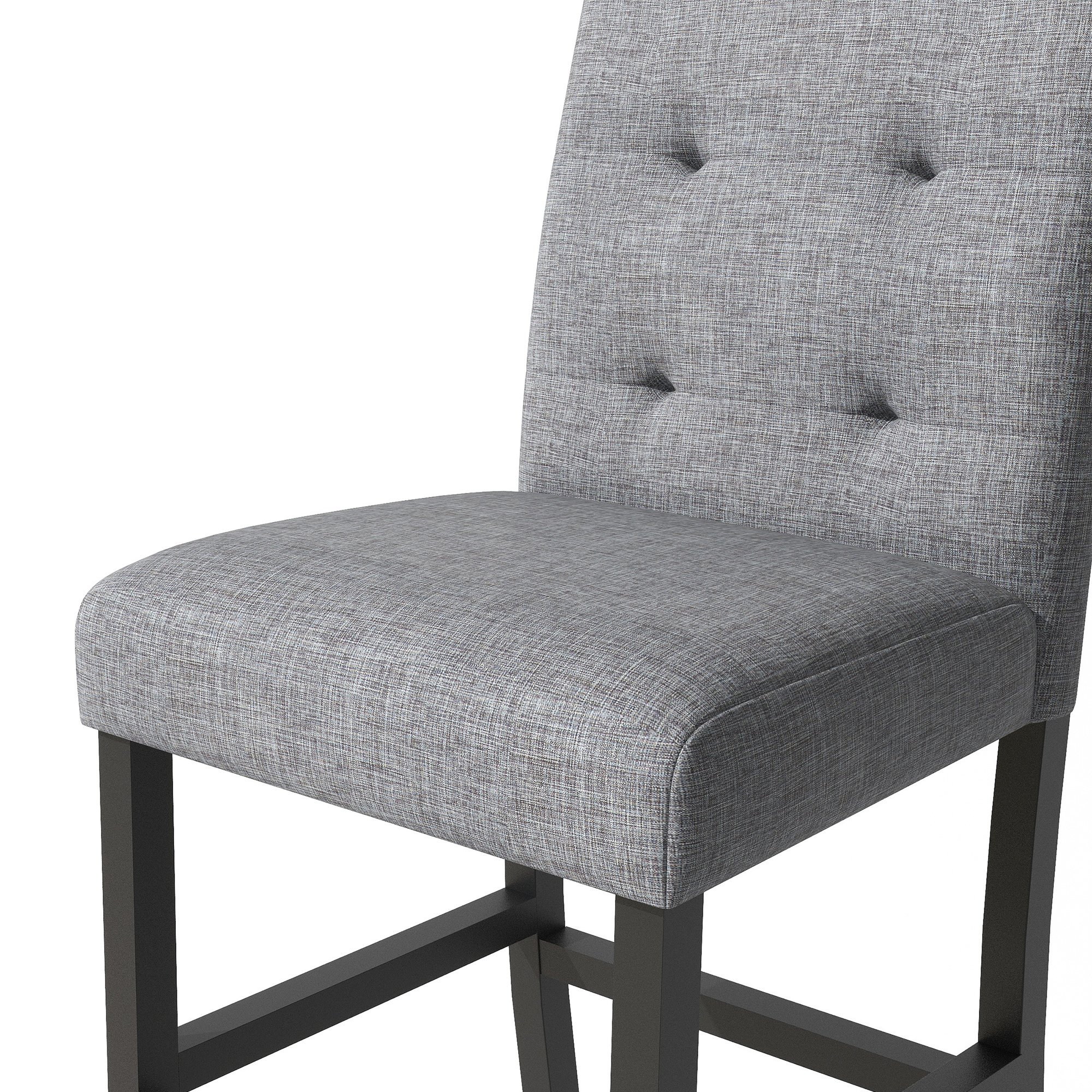 [Irresistible Dining Room Centerpiece] Combining elegant gray chair upholstery and decadent black natural wood frames this dining furniture set provides a beautiful 2-tone look. This taller table and chair set offers a more unique and casual look for your dining room compared to standard-height ones.
